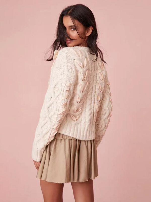 Women's Round Neck Bow Neck Ribbon Sweet Sweater Versatile Top